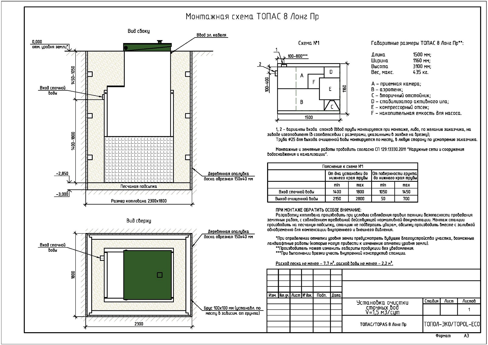 | Производительность | 1,5 м3/сут. |